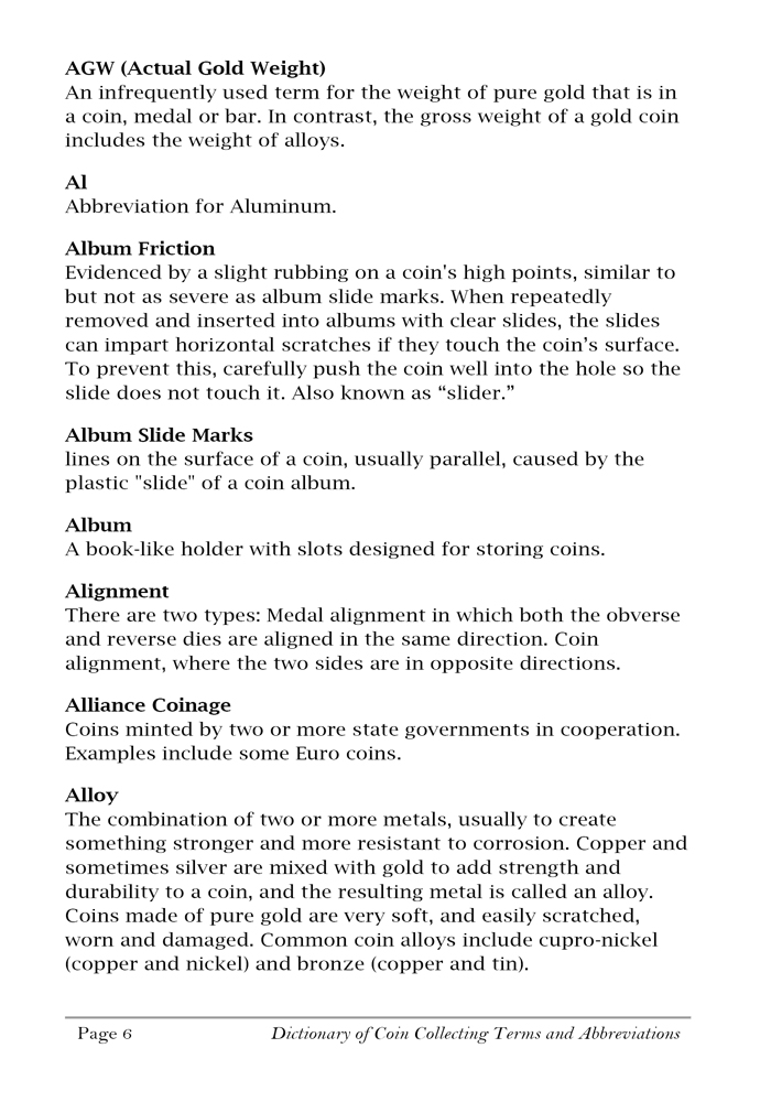 DICTIONARY OF COIN COLLECTING TERMS and ABBREVIATIONS ™